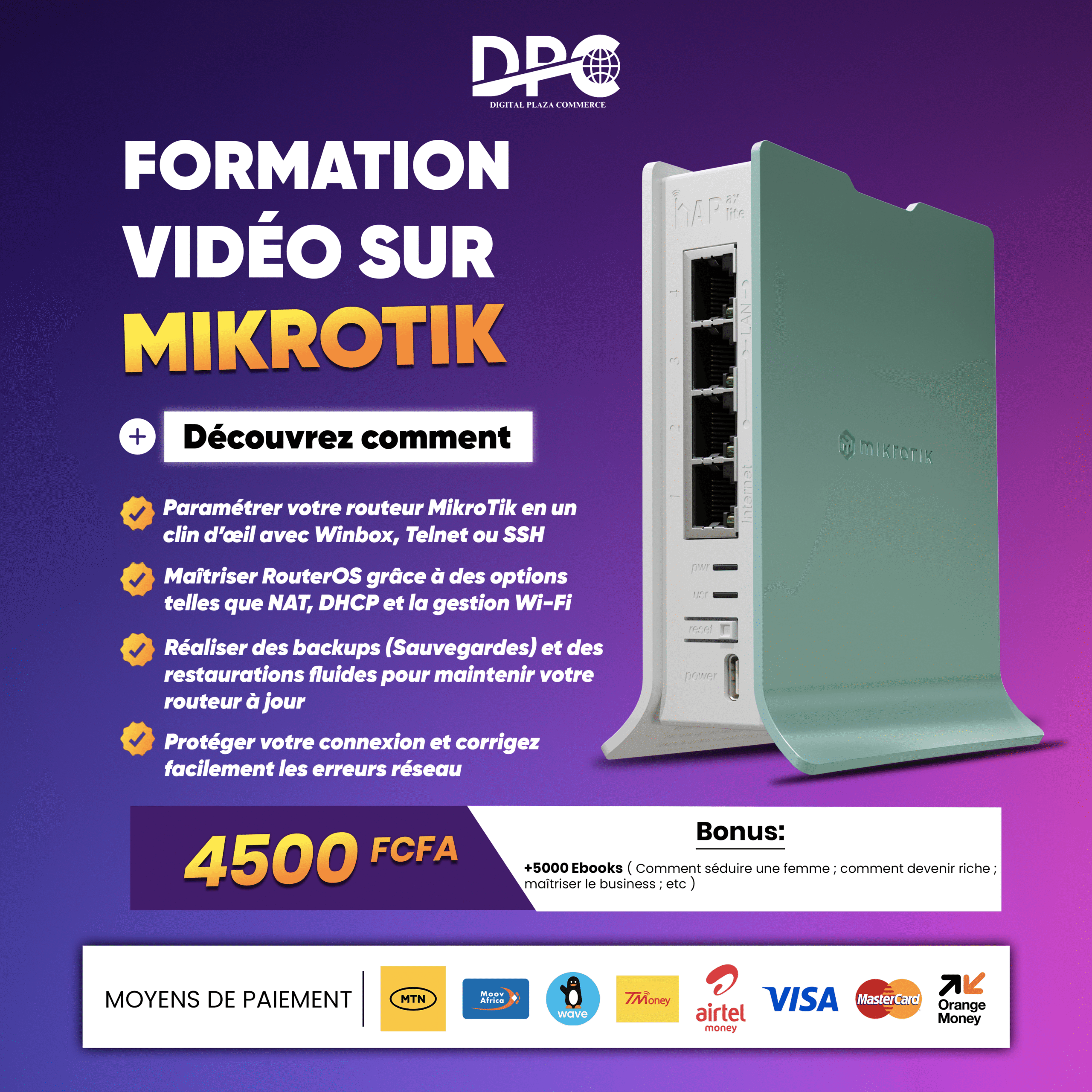 🔥 Accédez à cette formation dès maintenant et devenez un expert en MikroTik, tout en profitant d’un pack de +5000 ebooks offerts pour booster vos connaissances et votre réussite !
