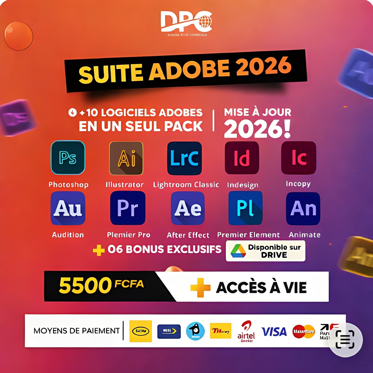 Commandez dès maintenant la Suite Adobe 2026 et profitez de +06 bonus exclusifs pour libérer votre créativité sans limites !